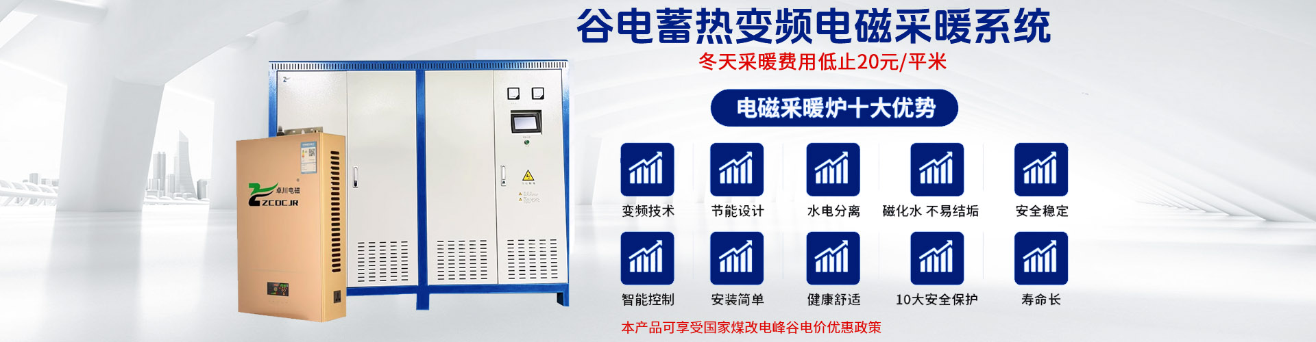 2014 年起為響應國家打造清潔能源“煤改電”共造藍天工程,我司推出變頻電磁感應加熱采暖爐,通過數年來技術積累支撐,卓川電磁采暖爐一經推出,被社會認可并喜愛 ,到目前為止,京津冀、東三省、新疆、內蒙古、甘肅等地區用戶已達數千余家,受到各地經銷商和用戶的一致好評,產生了很好的經濟效益和社會效益。本產品所采用的電磁加熱方式,熱轉換率高,運行成本低,節能安全,達到國家節能減排要求,解決了環境污染問題,成為當前新式、節能的電加熱取暖設備,是未來“煤改電”、“氣改電”發展方向,具有廣闊的應用前景。